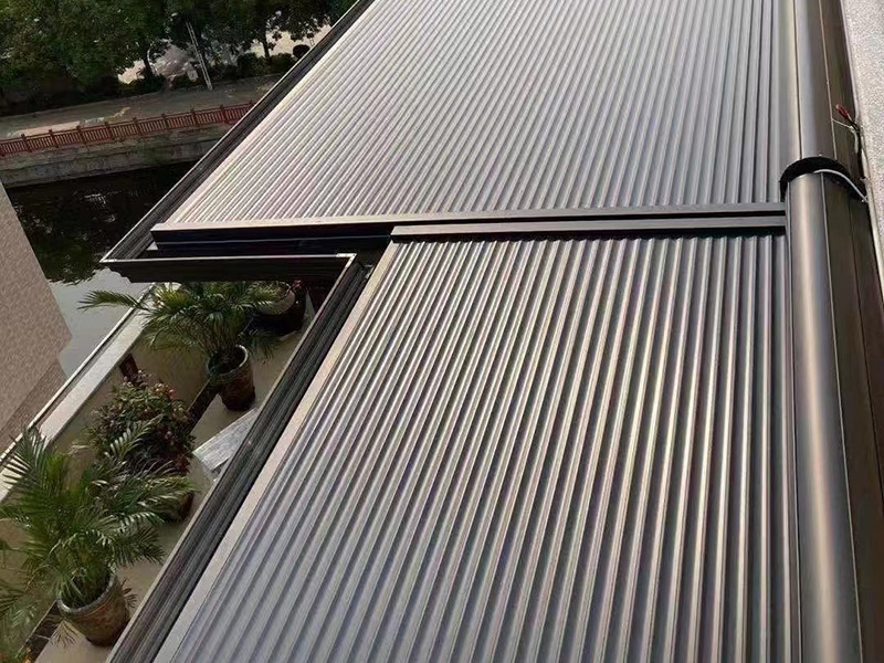 效果:帘片与轨道无缝隙,可做到完美遮住光线,可抗台风,收起后隐藏性好与建筑融为一体,外形大方美观